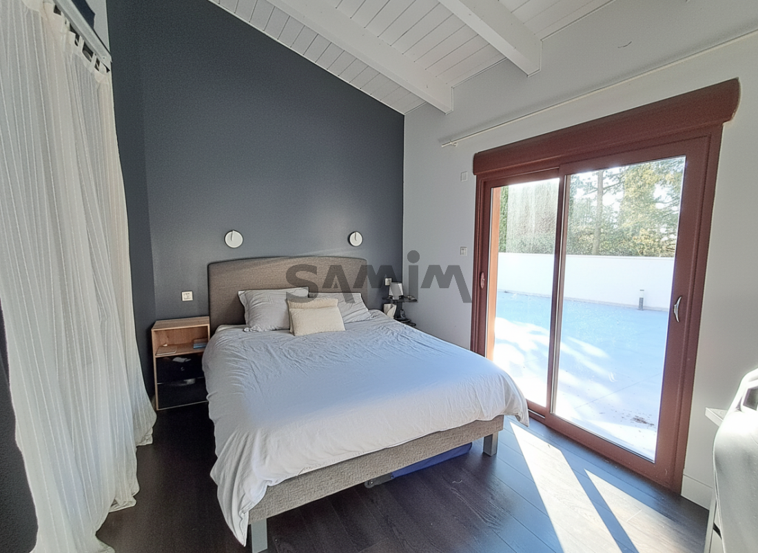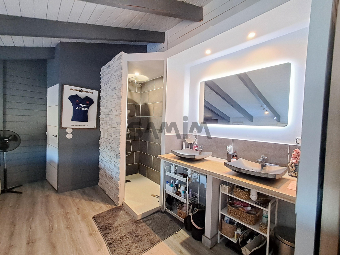 Les chambres du rez de chaussée profitent d'espaces de placards et partagent une salle d'eau avec douche à l'italienne. A l'étage une vaste suite parentale complète le coin nuit.